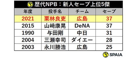 広島に新たな守護神が誕生した。ドラフト1位ルーキーの栗林良吏である。開幕から22試合連続無失点と鮮烈なデビューを飾ると、最終的に新人最多タイとなる37セーブをマーク。防御率0.86、セーブ成功率100%と抜群の安定感だった。なぜ、ここまでの好成績を残すことができたのか、投球内容をより詳しく探ってみたい。