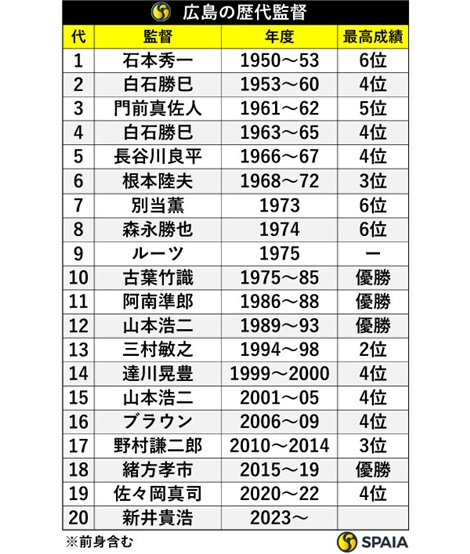 2022年、広島はシーズン最終盤まで阪神、巨人と熾烈なCS争いを繰り広げたが、最終的には4年連続Bクラスとなる5位に終わった。3年間指揮を執った佐々岡真司監督は退任。2023年は新井貴浩新監督の下、巻き返しを目指す。